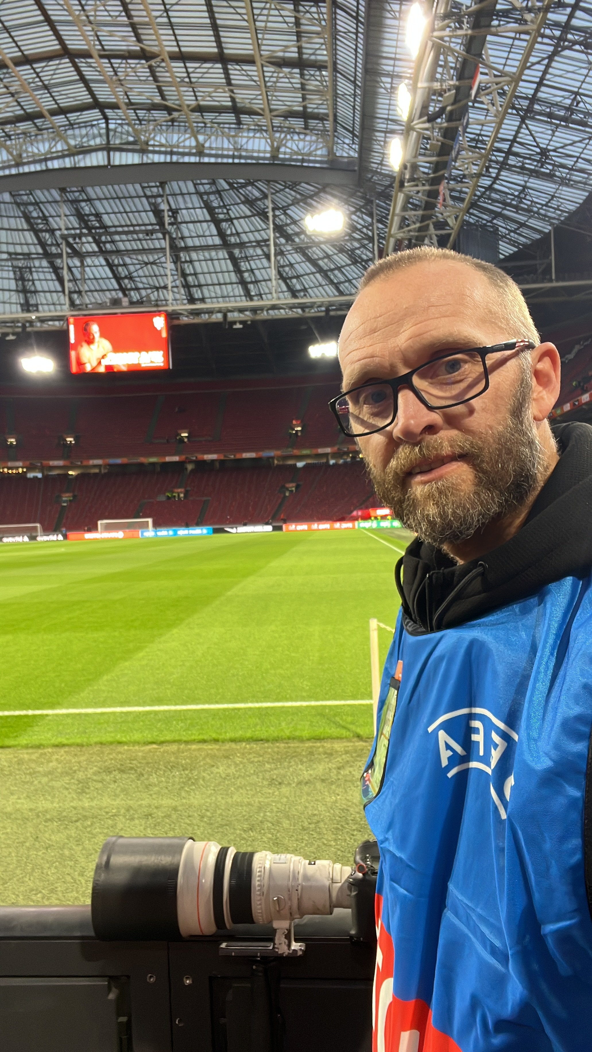 Planning this ahead of time, I secured my accreditation as a photographer for the match and decided to stay a couple of days longer in Amsterdam so that I could cover this match. Thursday the 26th I made my way to the stadium so that I could also cover the press conference with Norwegian coach Ståle Solbakken and captain Sander Berge, while also photographing the open training after. This was my first time covering the Norwegian national team and also my first time at this stadium, a beautiful stadium where Ajax play their home matches. With a possibility of rain for the match, the stadium having a roof ment extra comfort for us photographers also.